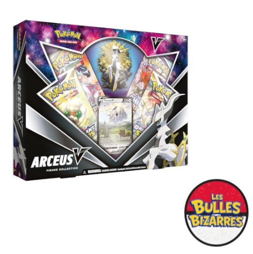 La figurine Arceus est finement sculptée et peinte, parfaite pour mettre en valeur votre collection ou pour créer une scène de jeu impressionnante. La carte Arceus V offre un ajout puissant à votre deck et est un objet de collection recherché.
