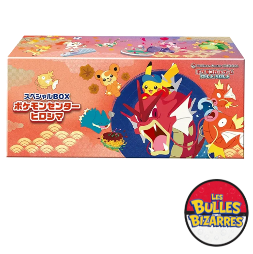 Le Coffret Pokémon Center Hiroshima est une édition spéciale et exclusive, initialement disponible uniquement dans le Pokémon Center situé à Hiroshima, au Japon. Ce coffret met à l’honneur l’histoire culturelle de la ville ainsi que la célèbre mascotte locale du Pokémon Center d’Hiroshima : Magicarpe rouge et Dracolosse, souvent représentés dans une identité visuelle rouge éclatante, rappelant le torii emblématique et la carpe koi japonaise.