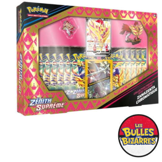 Le Coffret Premium Zamazenta Zénith Suprême est un choix parfait si vous souhaitez maximiser vos ouvertures de boosters tout en profitant d’objets de collection uniques.