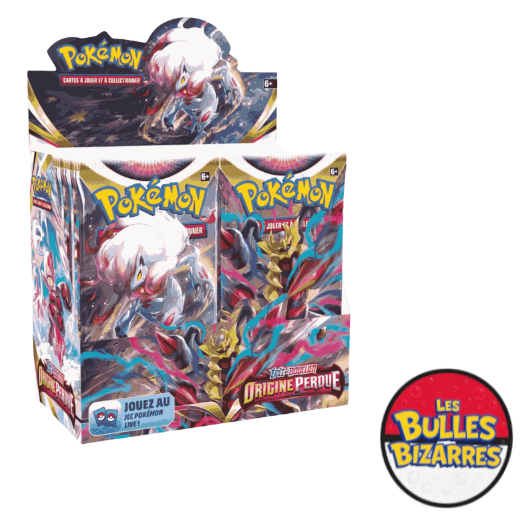 Le Display EB11 Origine Perdue (Lost Origin – Épée & Bouclier 11) est l’une des éditions les plus populaires du JCC Pokémon. Avec 36 boosters scellés, ce display offre un excellent taux de tirage et de nombreuses cartes recherchées, dont les célèbres Giratina VSTAR et Aerodactyl V Alternative Art.