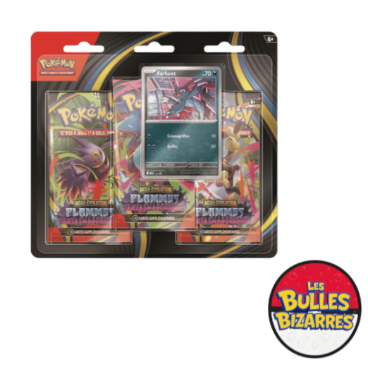 3 boosters Flammes Fantasmagoriques : chaque booster contient des cartes inédites, rares et ultra-rares.